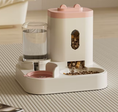 Automatyczny podajnik karmy dla zwierząt. Wariant różowy
